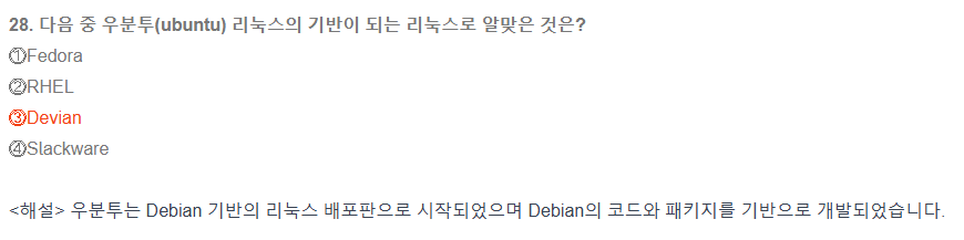 | 다음 중 슬랙웨어 계열 리눅스에 속하는 배포판으로 틀린 것은?① Salix OS② Vector Linux③ SUSE④ Knoppix (0) | 2025.05.24 |