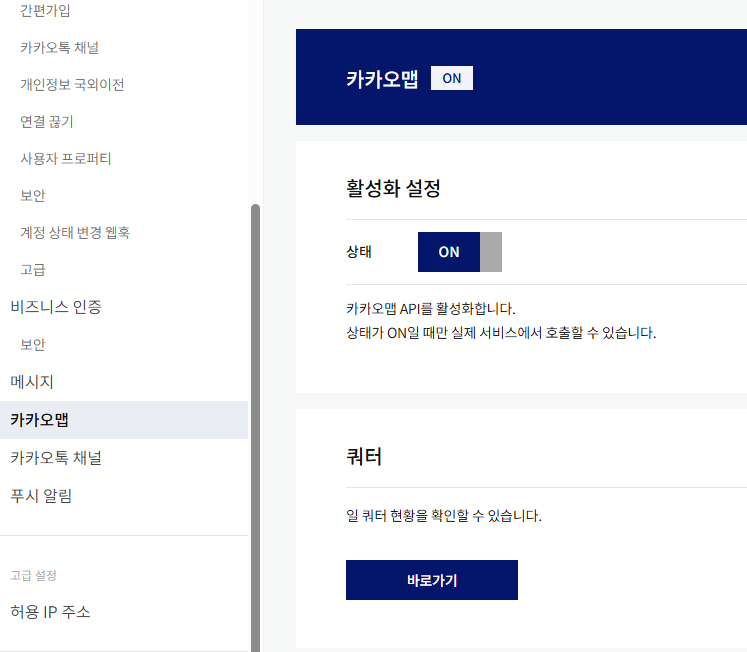 xemaker 2025. 7. 2. 17:59내 애플리케이션 > 카카오맵 > 활성화 설정