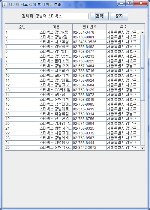 네이버 지도에서 검색했을때 나오는 정보 (예: 이름,전화번호,주소 등) 를 스크래핑 하는 프로그램을 자바로 만들어봤다.