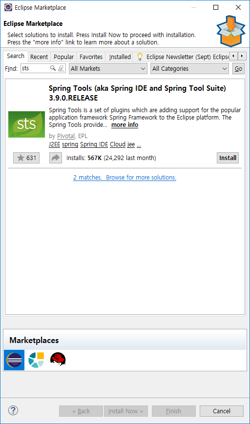 이클립스에서는 생산성을 위해서 sts라는 플러그인을 설치할 것이다.
