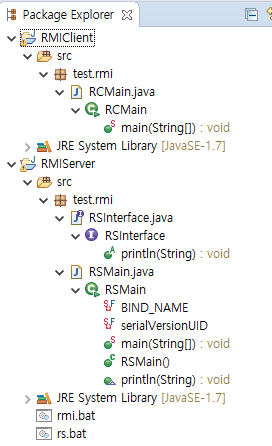 이렇게 임포트를 하면 아래 처럼 RMIClient 와 RMIServer 프로젝트 2개가 생성될 것이다.