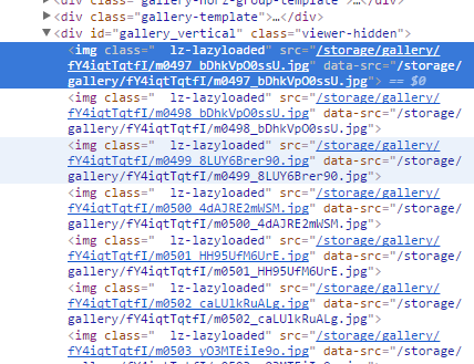 html 코드를 보면 이미지들이 가진 특정 클래스가 있다. 이 클래스를 가진 img 태그들을 얻어낸 후, data-src 속성을 뽑아내자.