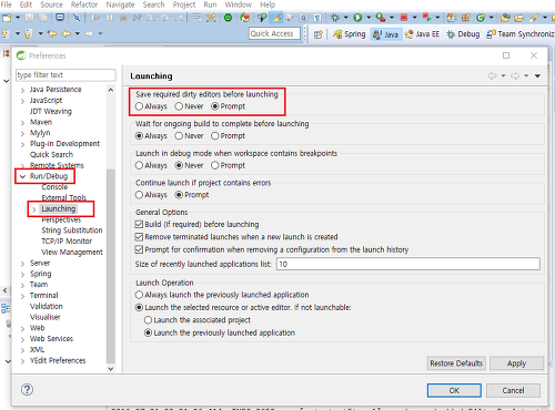 이클립스에서 저장하고 실행하기가 귀찮아 질때 실행만 하면 저장되고 실행하는 방법이다.