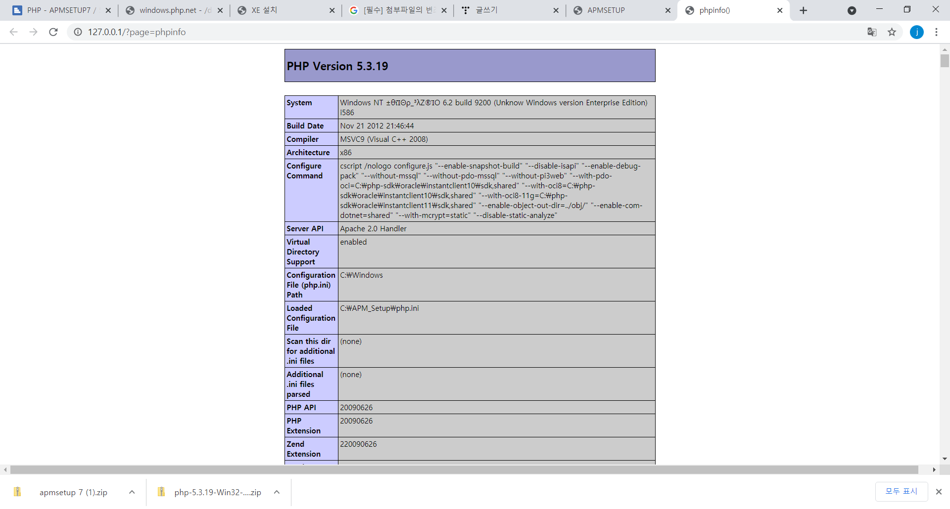 php-5.3.19-Win32-VC9-x86.zip 을 검색하여 다운