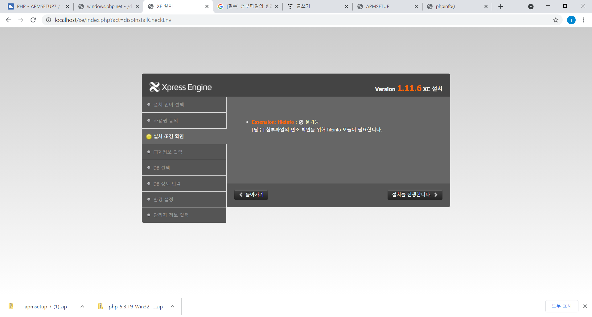 autoset 10 에서 xe3설치시 FileInfo PHP 확장 기능이 필요합니다에 X 가 쳐있다.