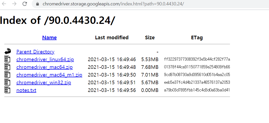 chromedriver_win32.zip 을 클릭하면 다운로드 받아지고 압축을 풀면 chromedriver.exe 가 생긴다.