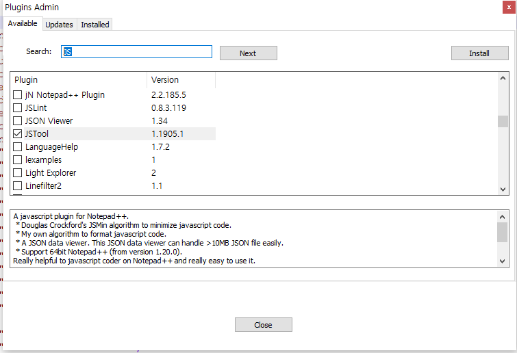 JSTool 선택 후 Install