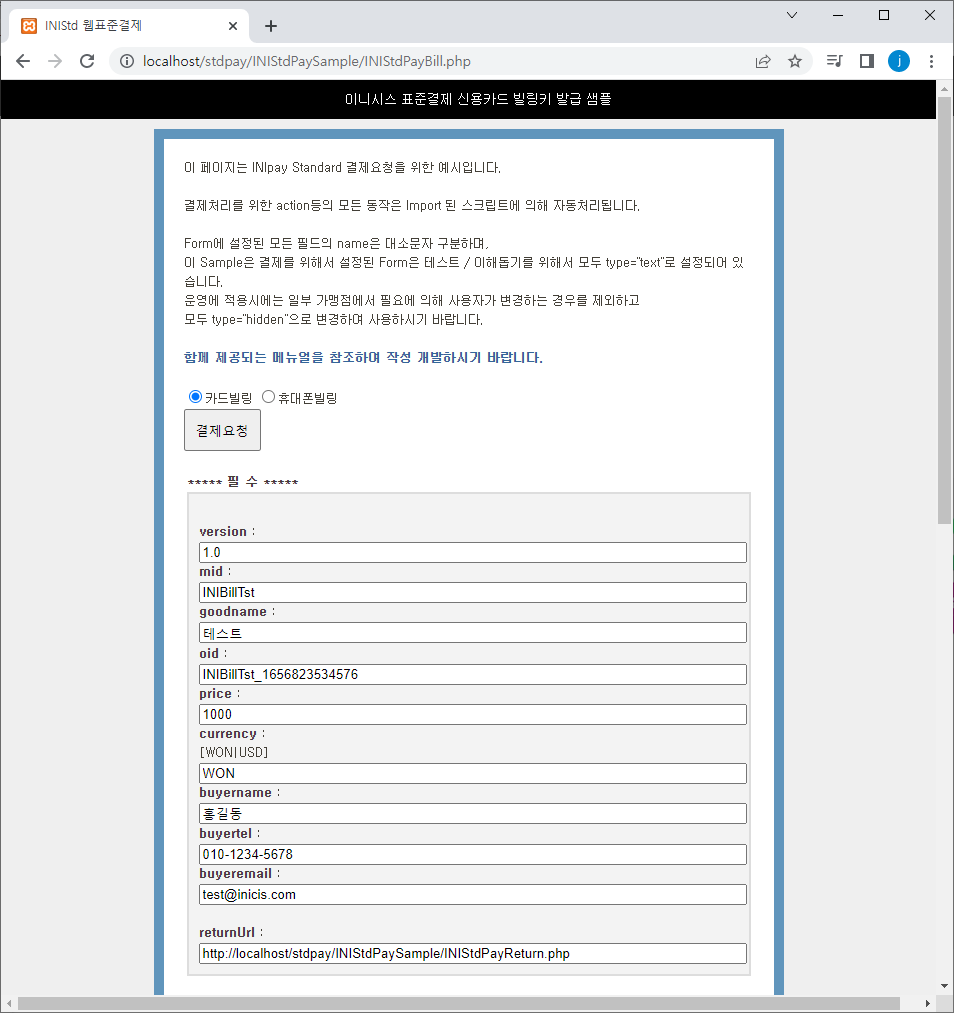 http://localhost/stdpay/INIStdPaySample/INIStdPayBill.php