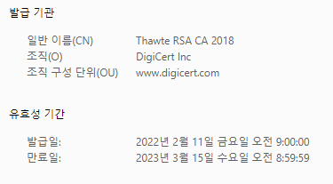 그러면 위와 같이 나오고 인증서가 유효함 부분을 클릭한다.