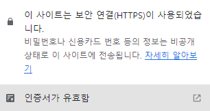 그럼 이 사이트는 보안 연결(HTTPS)이 사용되었습니다 부분을 클릭한다.