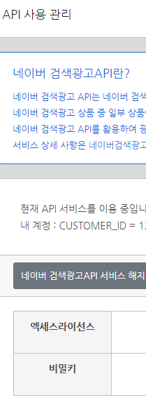 네이버 광고 > 도구 > API 사용관리 가보면