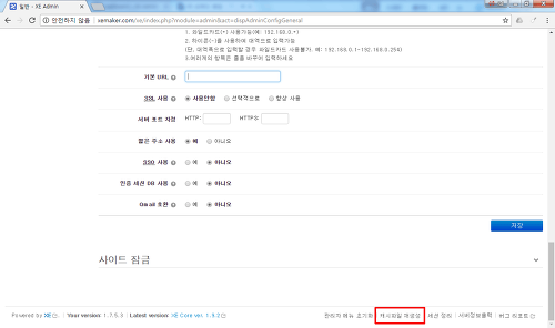 xe관리자 -> 설정 -> 일반