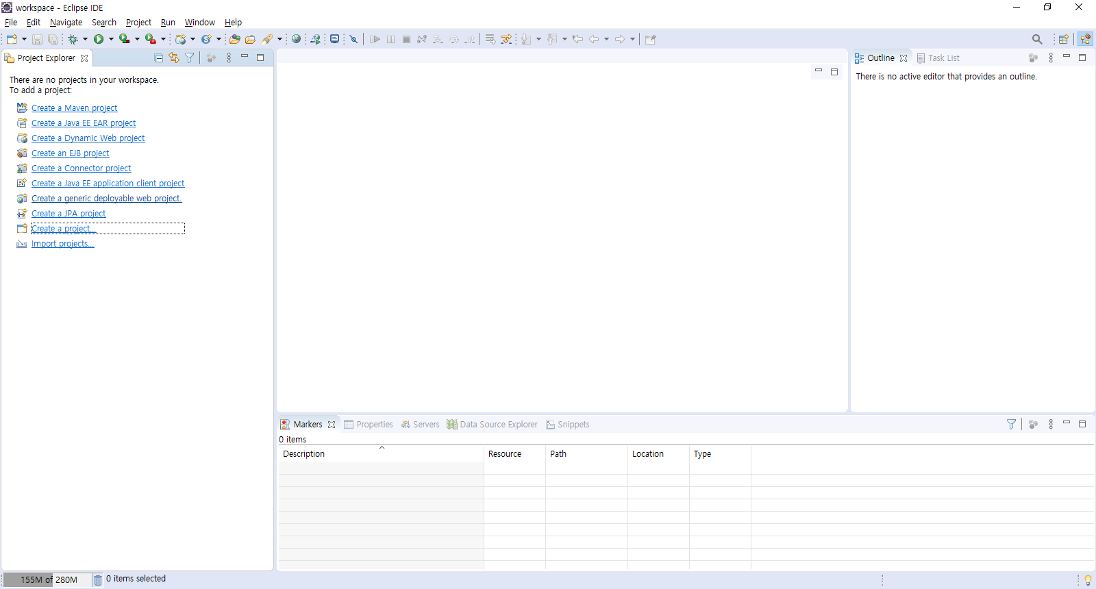 Welcome 탭에서 x 를 클릭하여 닫는다.