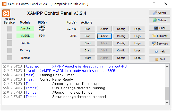 maria db를 연동해야 하기때문에 apmsetup을 설치하려고 했는데 지원이 잘 안되는거 같아 xampp를 설치하였다. xampp 설치는 쉽다. 그냥 디폴트로 다음만 누르면 된다.