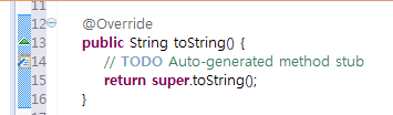 빨간 네모 부분 보면 "Overrides : to String in class Object"라고 써 있는데