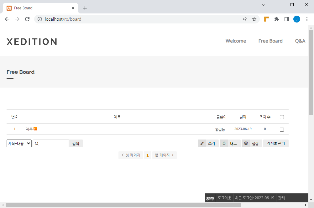 우선 간단하게 1건만 라이믹스 게시판에 insert 하는 코드 입니다.